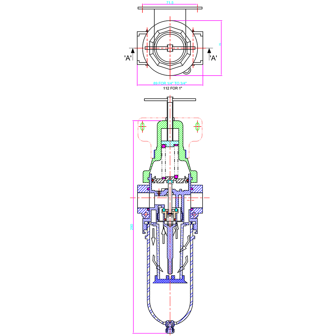 Net Weight | (1/4”-3/4”)- 1.458 kg , 1”BSP-1.968 kg , 1”NPT- 1.555 kg PC Bowl (1/4”-3/4”)- 1.708 kg , 1”BSP-2.320 kg , 1”NPT-1.805 kg Metallic Bowl |