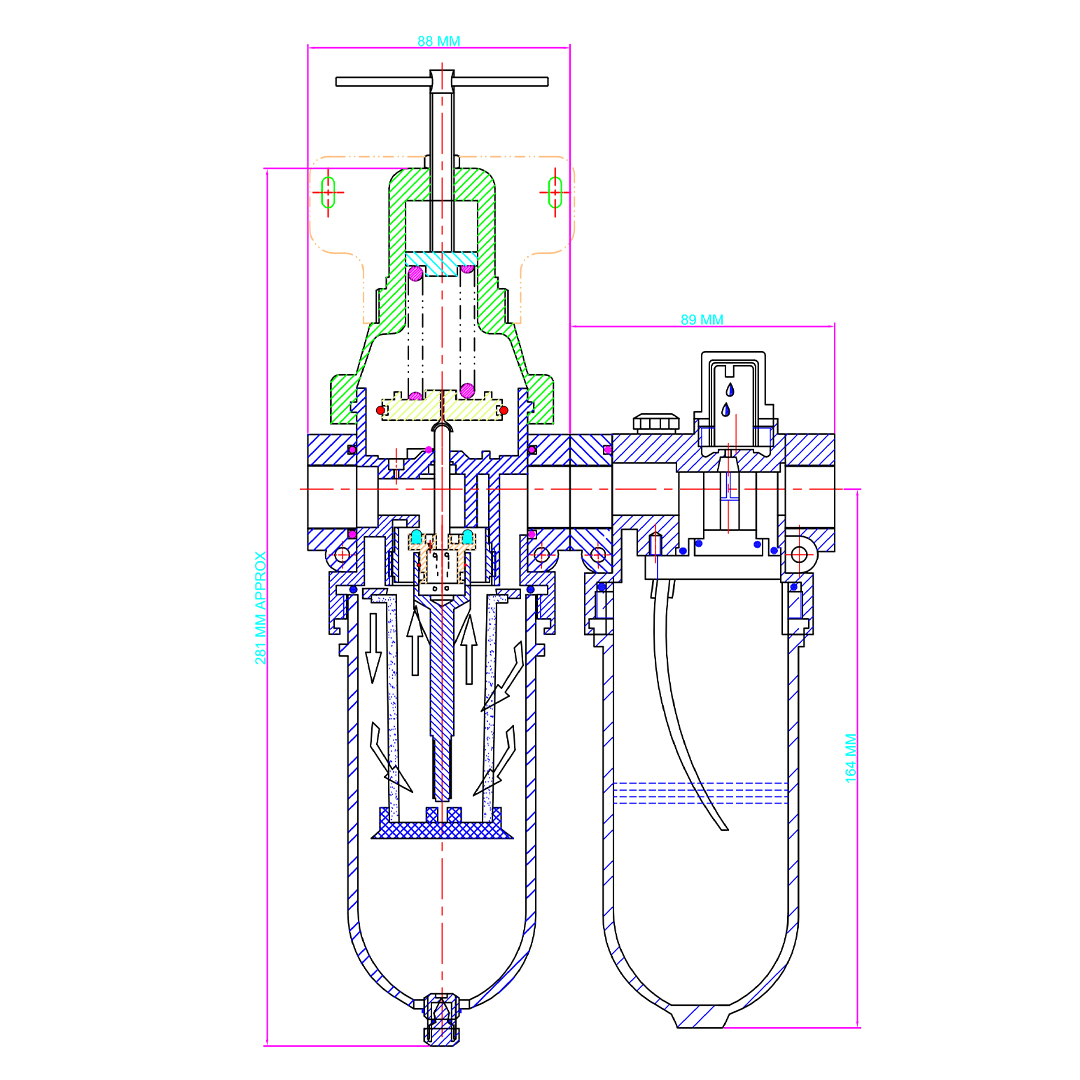 | Net Weight | (1/4”-3/4”)- 2.417kg , 1”BSP-3.024 kg , 1”NPT- 2.514 kg PC Bowl (1/4”-3/4”)- 2.777kg , 1”BSP-3.524kg , 1”NPT-2.654kg Metallic Bowl |