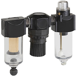 The Miniature FRL's are the best in category with the function of a minimum pressure drop over a wide operating range. Two full flow 1/8" gauge ports can be used as secondary outlet ports.